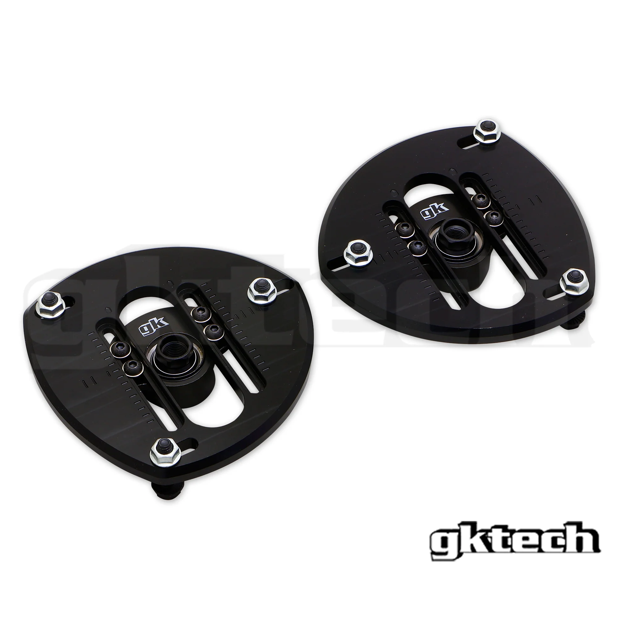The GKTech strut tops offer a straightforward, bolt-on solution for your coil overs, requiring no additional modifications. Easily accessible bolts on the strut top allow for on-car adjustment of both camber and caster, providing a significant adjustment range.